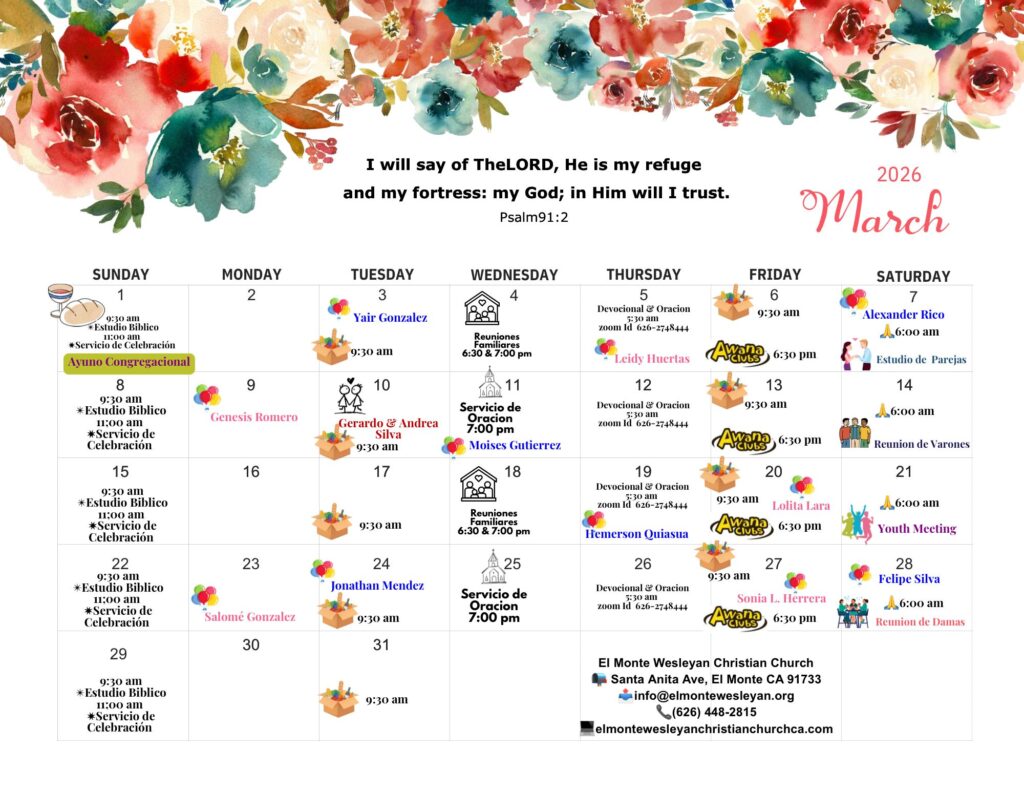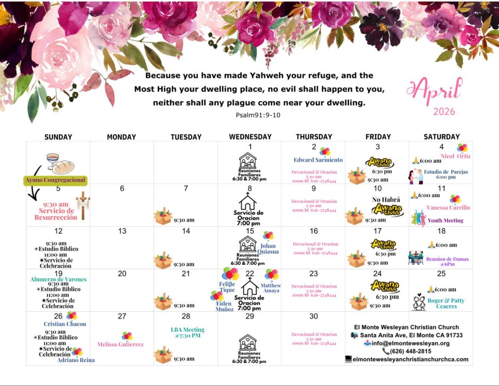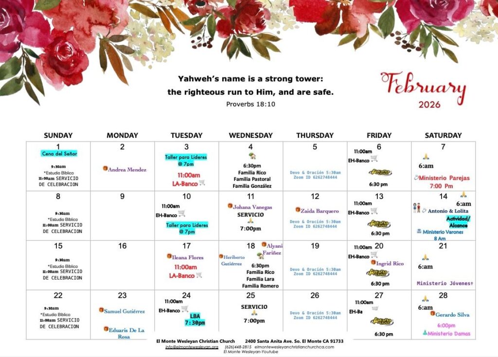 At El Monte Wesleyan Christian Church, we are a family united by faith, love, and the shared mission to be the Church wherever we go. Under the guidance of our Senior Pastors, Rev. Asdrubal Chacon and Rev. Maria Jose Chacon, and Assistant Pastor Carlos Chacon, we are committed to sharing the transformative message of Jesus Christ with our community and beyond.